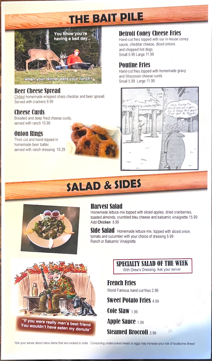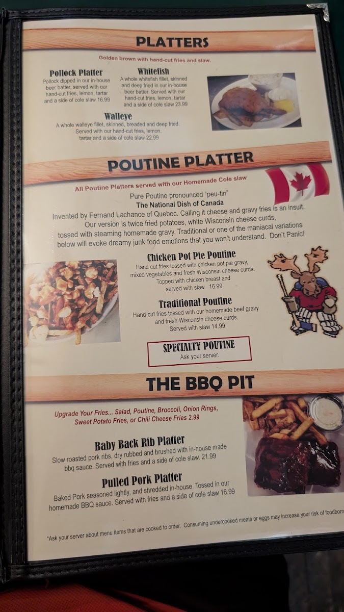 A whole walleye fillet, skinned, breaded and deep fried. Served with our hand-cut fries, lemon, tartar and a side of cole slaw