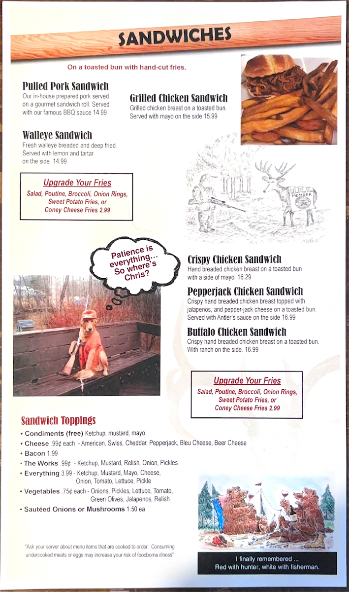 Crispy hand breaded chicken breast topped with jalapenos, and pepper-jack cheese on a toasted bun. Served with Antler's sauce on the side